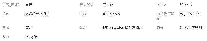 六偏磷酸鈉作為軟水劑,如用在染整上,起到軟水作用;還作為阻垢劑,廣泛應用于EDI(樹脂電滲析)、 RO(反滲透)、 NF(納濾)等水處理行業。